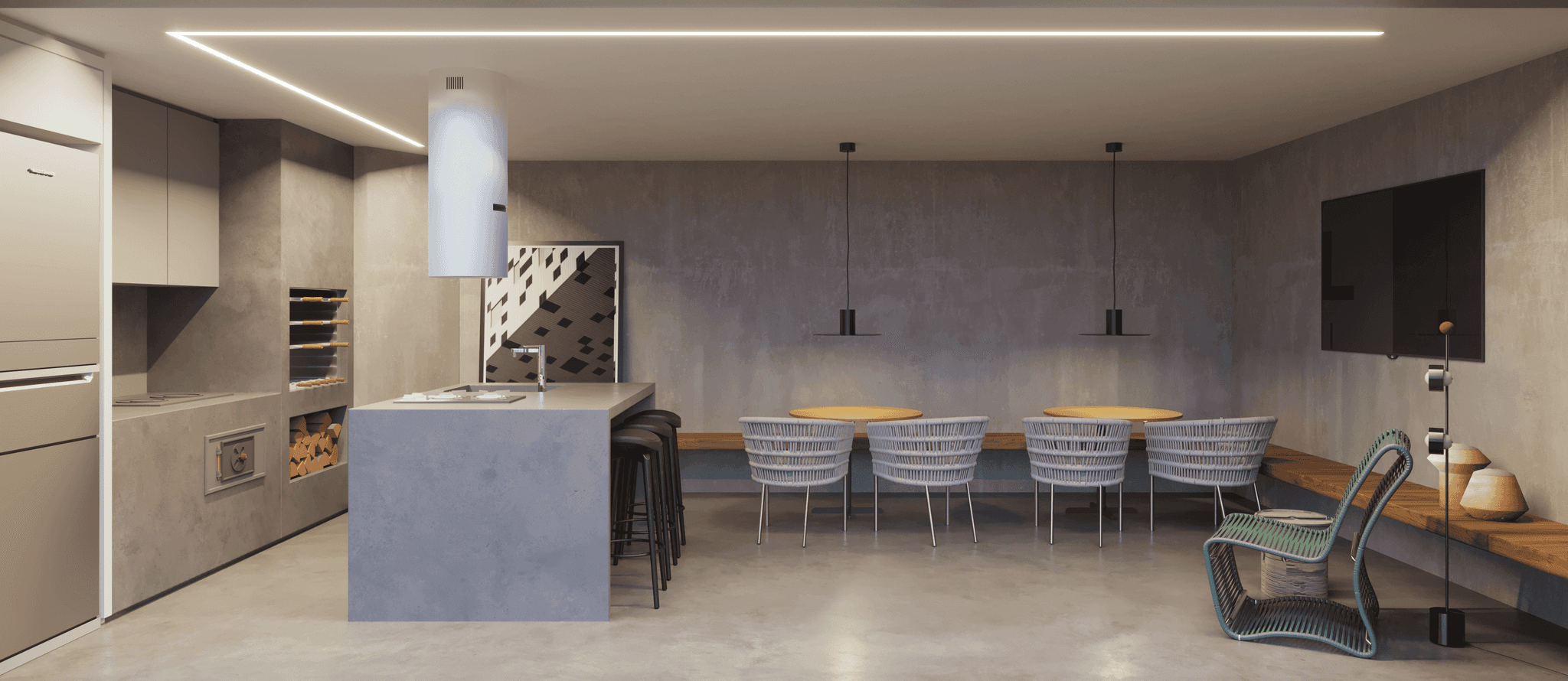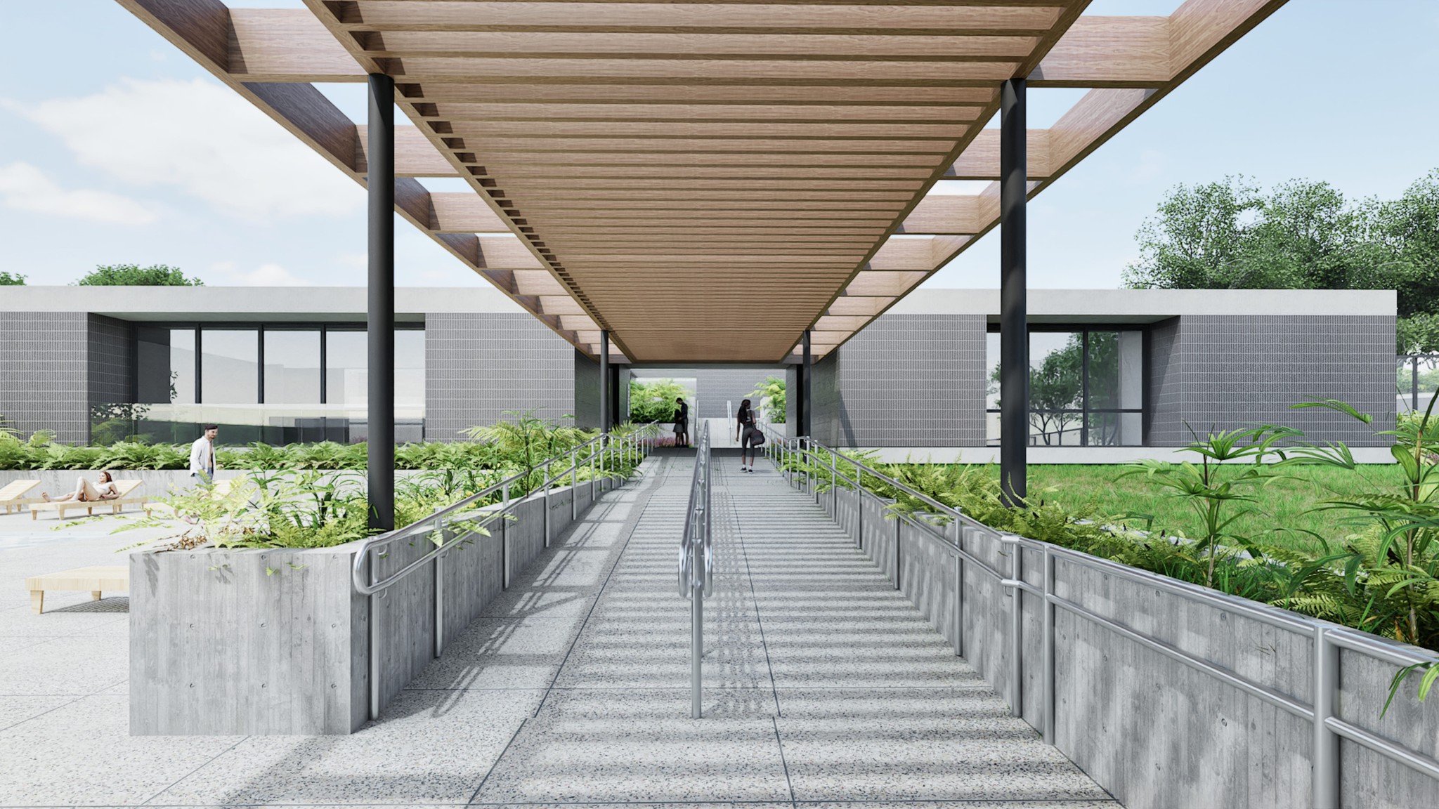 Projetado para ser acessível em todas as suas áreas, o Clube Tramonto supera os desníveis do terreno com rampas que seguem as normas da NBR 9050. A proposta central é criar um ambiente acolhedor, funcional e inclusivo para os moradores do Complexo Tramonto.