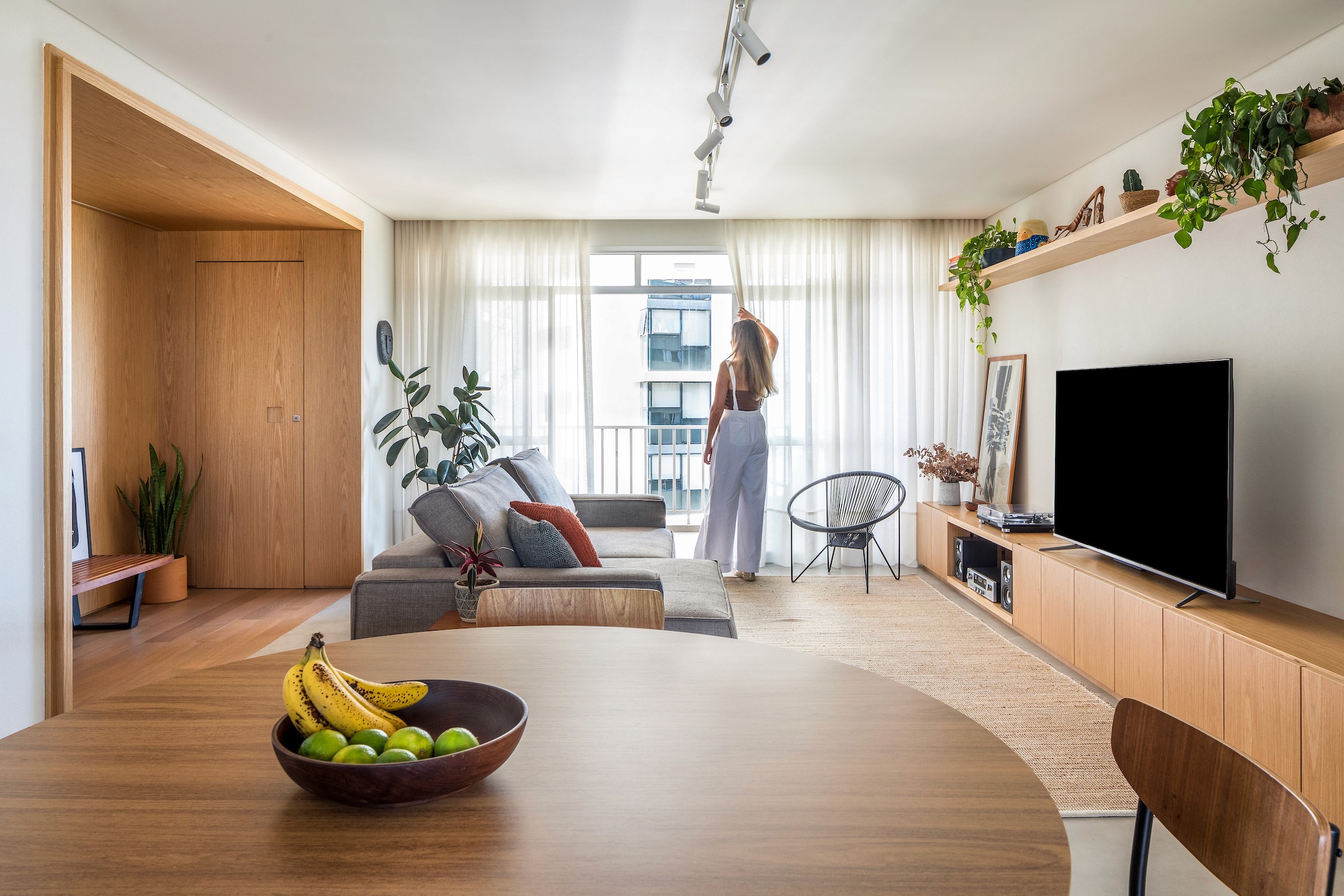 Reformar um apartamento antigo sempre traz desafios, mas também revela inúmeras possibilidades. Em um contexto em que o retrofit de apartamentos existentes se consolida como uma solução sustentável e ganha força em capitais onde o metro quadrado de imóveis novos atinge valores elevados, foi justamente essa combinação de potencial construtivo e localização privilegiada que levou um jovem casal a escolher um lar de 130 m² no alto do Juvevê, em Curitiba. Batizado de Apartamento Arepa, em homenagem à simpática cadelinha resgatada das ruas e hoje parte essencial da família, o projeto teve como foco principal repensar o layout original.