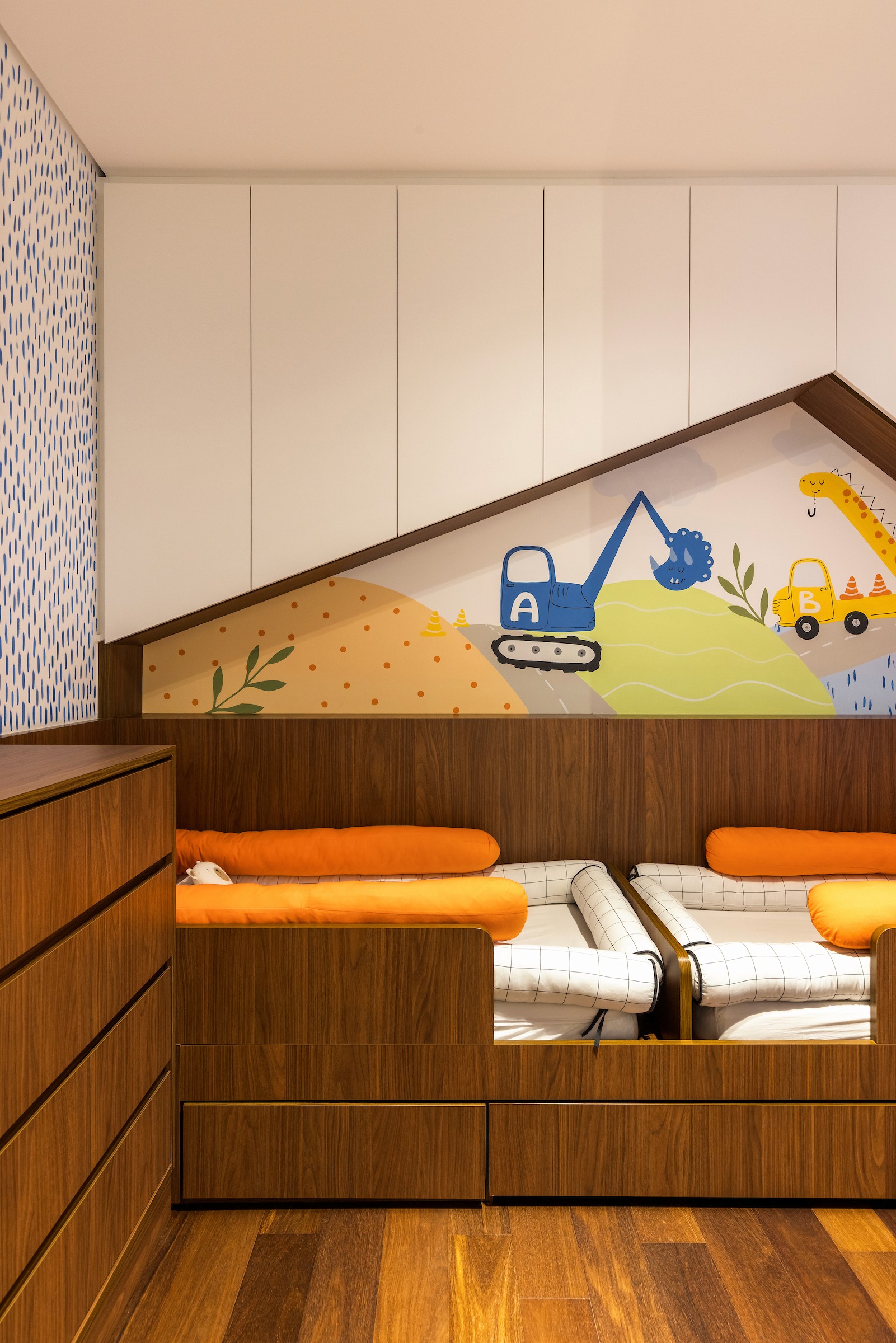 Um duplex familiar, projetado para equilibrar funcionalidade, segurança e atmosfera acolhedora.