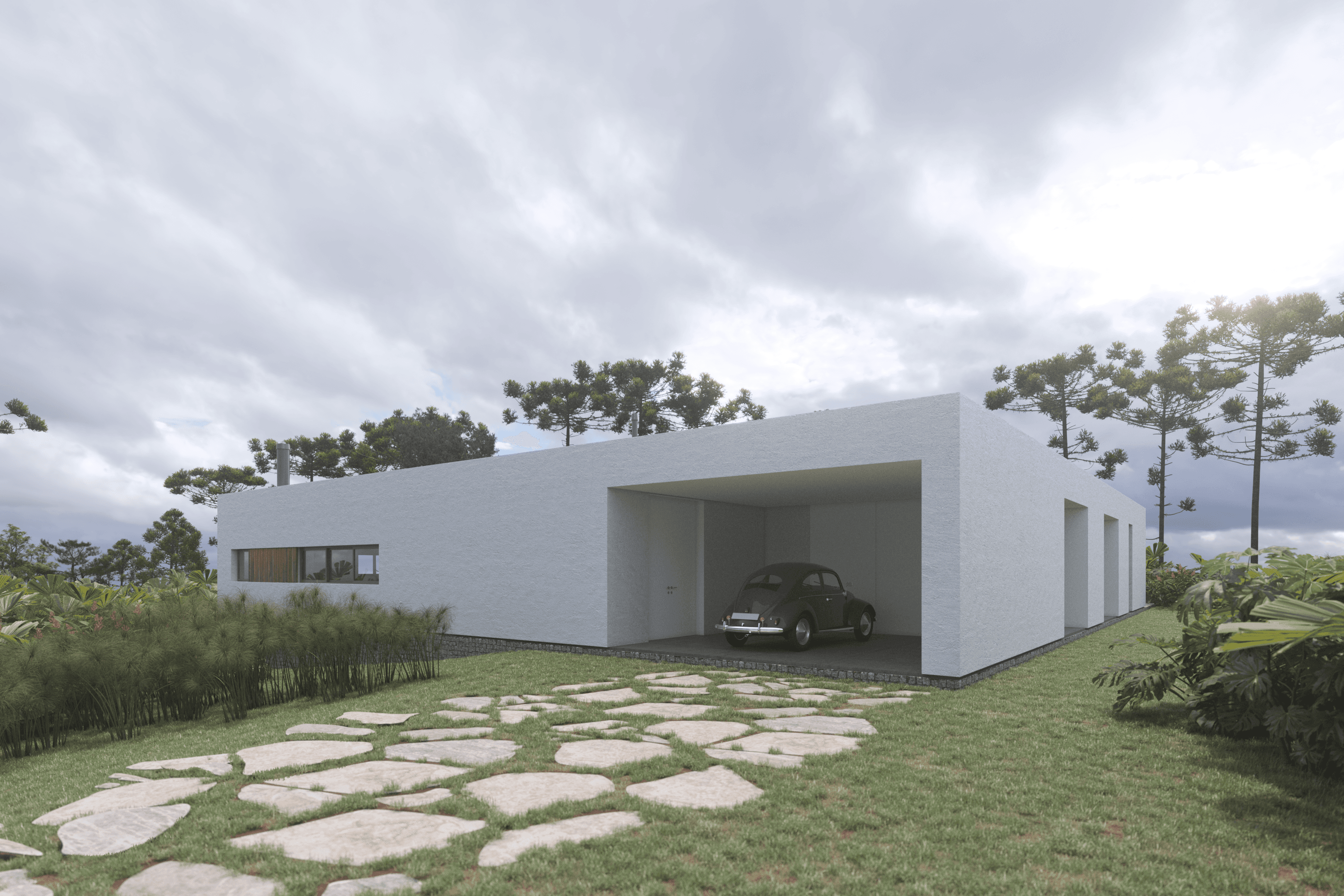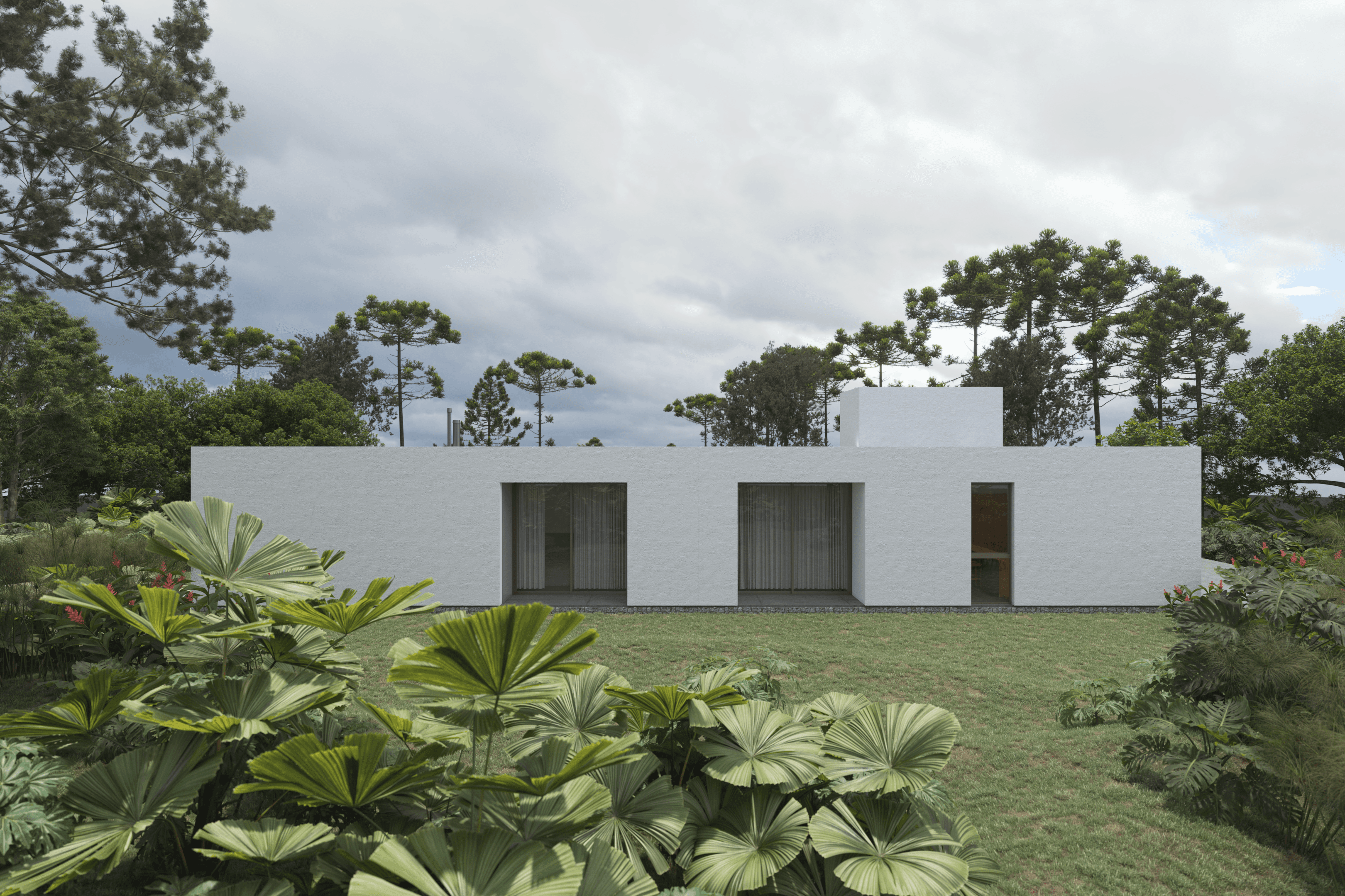 Nos arredores de Curitiba, em uma pequena propriedade rural, projetamos uma casa de veraneio para uma família se reunir aos fins de semana, um refúgio coletivo, onde o tempo corre mais devagar. Um lugar para acolher pais, irmãos, tias e amigos em torno do descanso, da convivência e da paisagem.