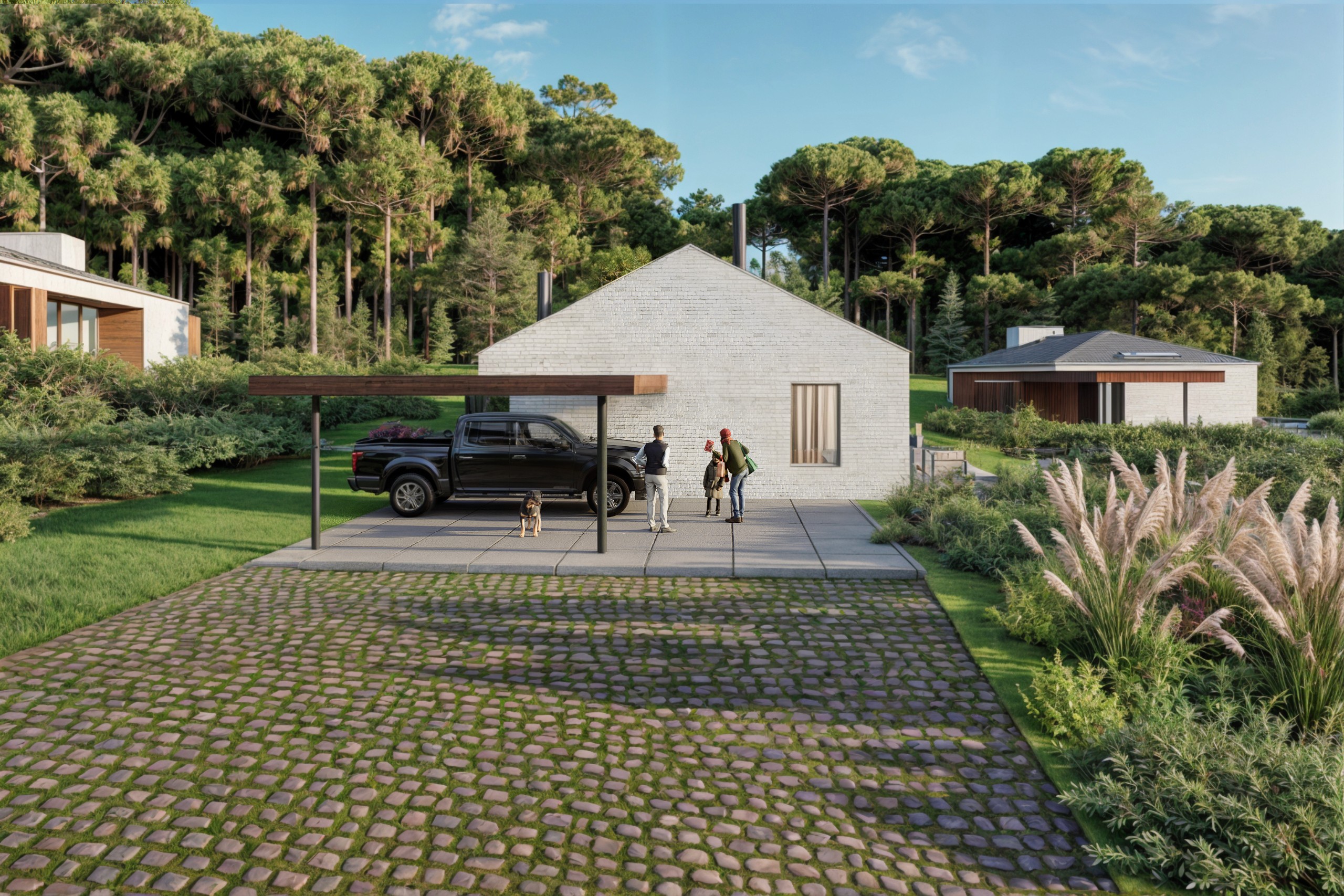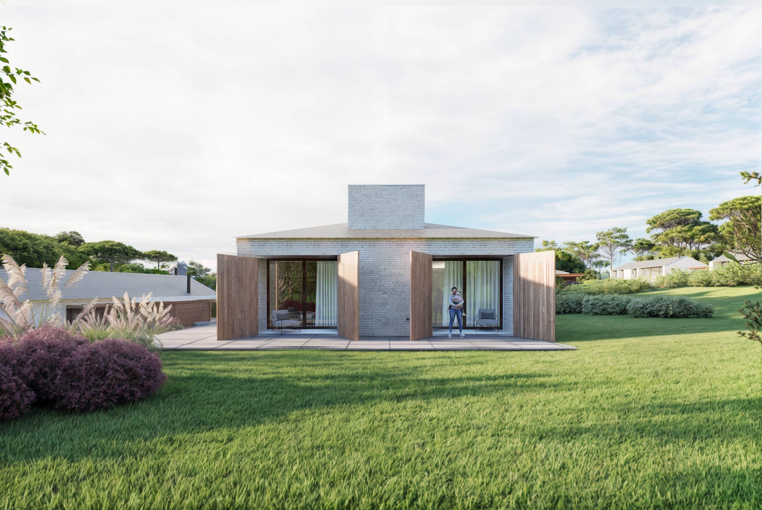 Ambas as casas dialogam entre si, com a paisagem e com o contexto — formando um conjunto que é ao mesmo tempo plural e coeso, espontâneo e pensado, com linguagem contemporâneo e equilíbrada