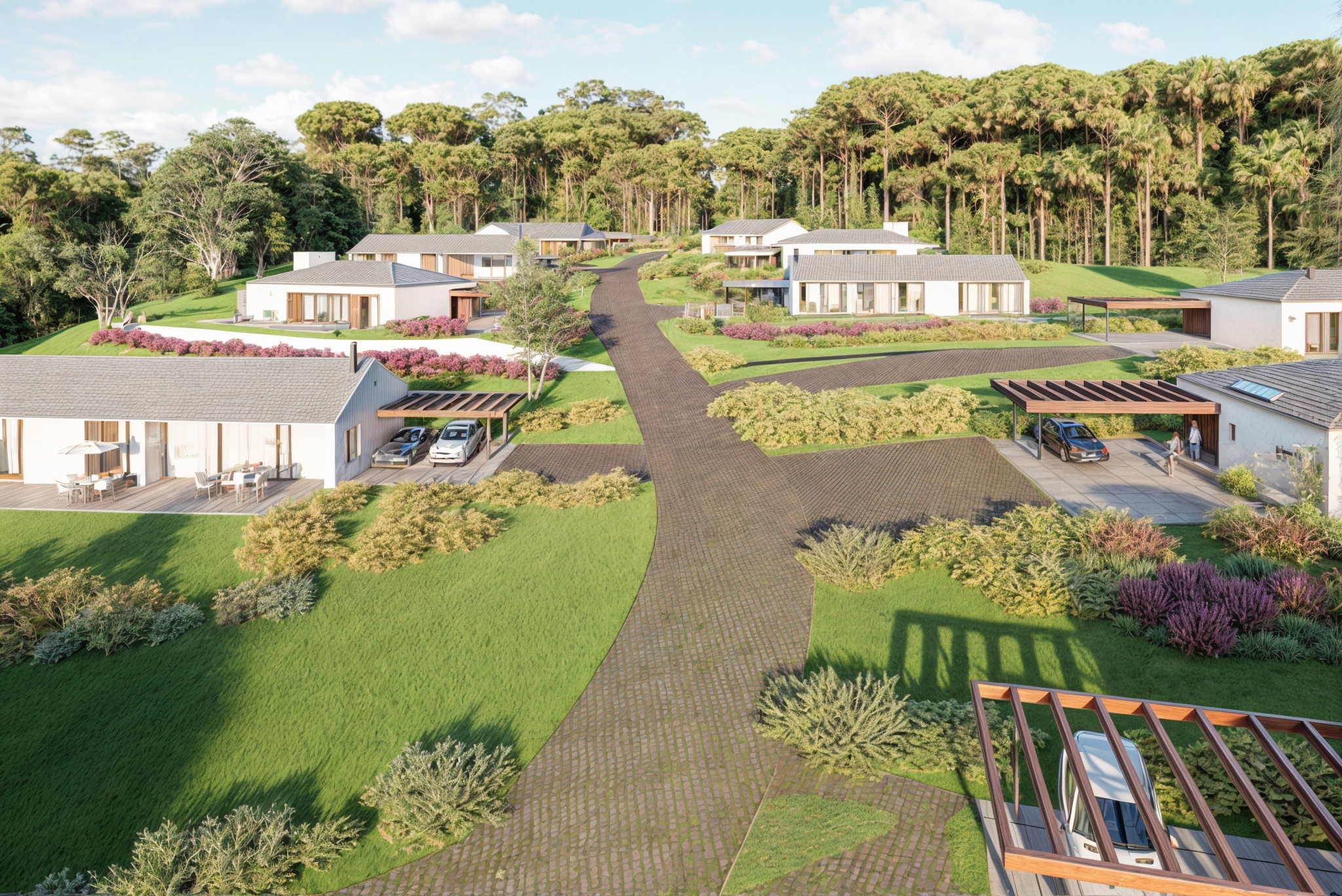 Uma vila de casas que se conecta com a paisagem e propõe diferentes formas de habitar e desfrutar da natureza